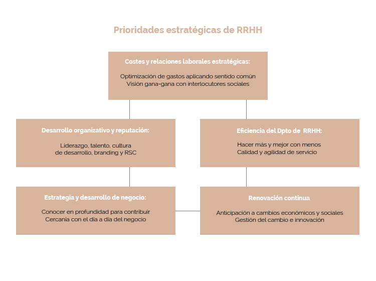 2. La función ha ido ganando peso estratégico en las compañías, si bien esta evolución positiva ha tenido sus altibajos derivados de los ciclos económicos, la cultura organizativa, el propio perfil e influencia de los profesionales de RH y la visión de la alta dirección en cada organización sobre la gestión de personas.